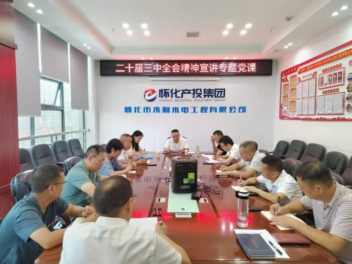 2024年9月29日,集團黨委委員、紀委書記劉文同志一行來到懷化市水利水電工程有限公司,宣講黨的二十屆三中全會精神。